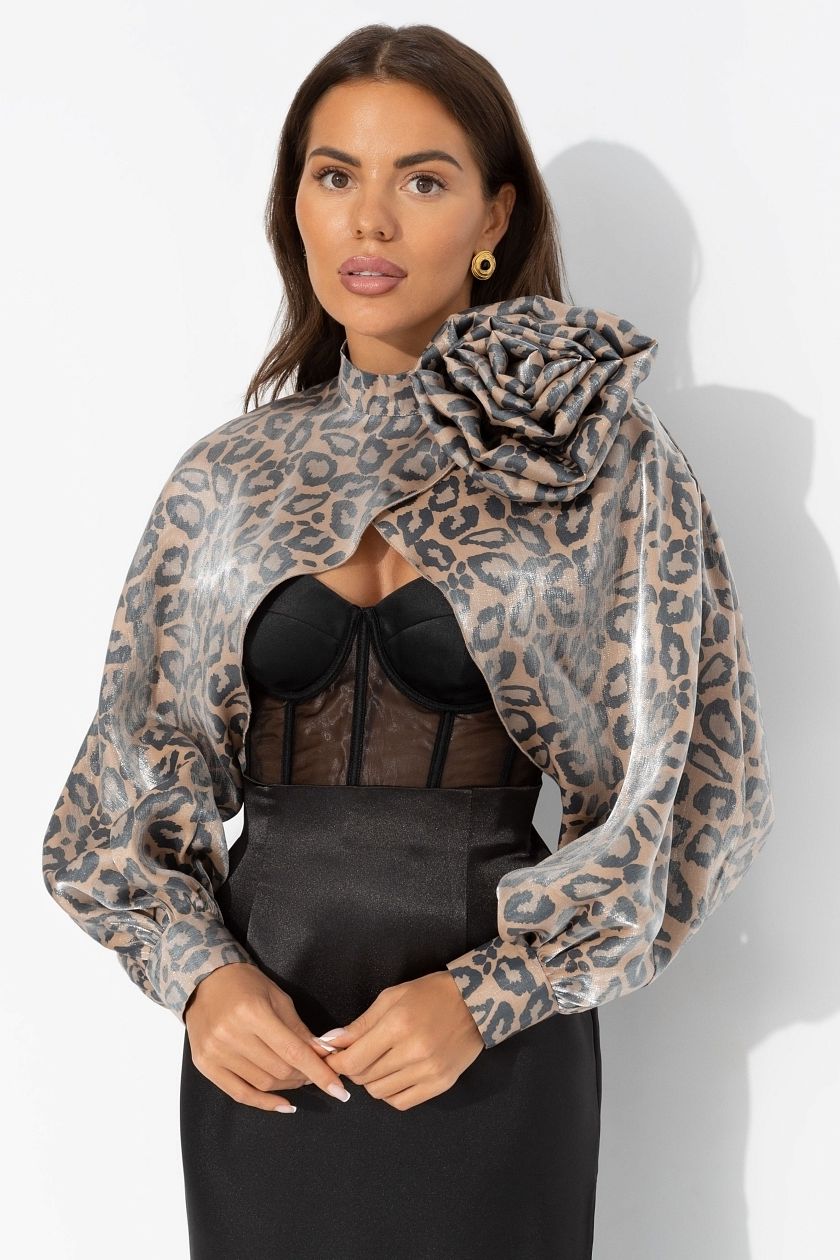 Болеро с перламутровым блеском со съёмным декором от компании Charutti. Болеро с длинными рукавами, выполнено из органзы. Застёгивается сзади на одну пуговицу. Закрывает плечи и зону декольте. Спинка остается открытой. Иеальный выбор для создания стильного образа.
