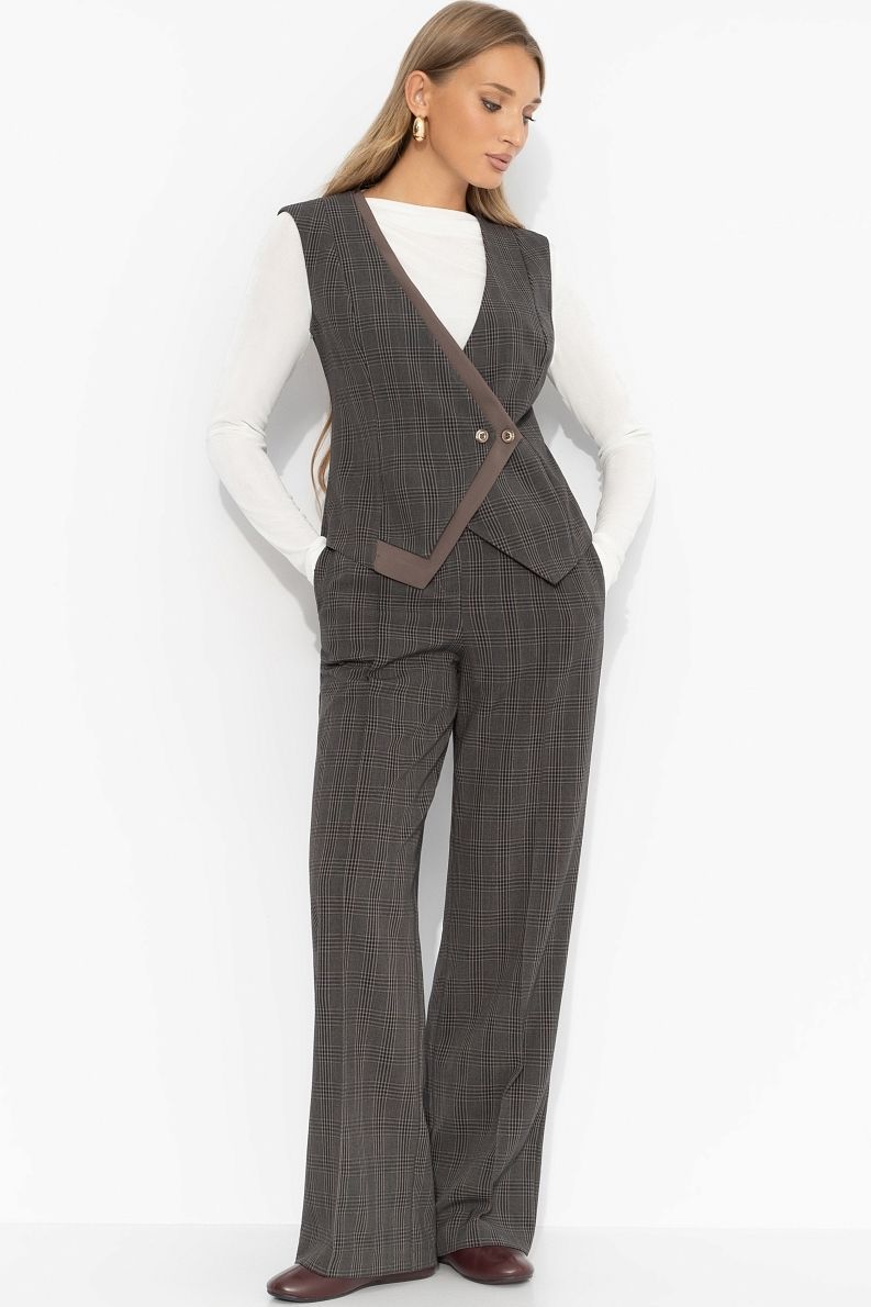 Брюки прямые коричневые в клетку от компании Charutti, выполнены из костюмной ткани. Пояс из акцентного материала. Изделие с карманами. Идеальный выбор для городских модниц.