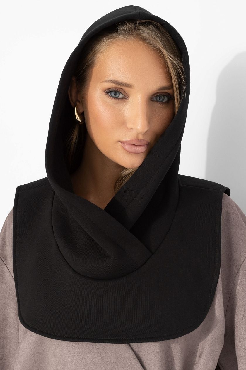 Капор-капюшон чёрный на флисе от компании Charutti классического кроя без застёжек. Свободная посадка универсального размера. Изделие надевается через голову.