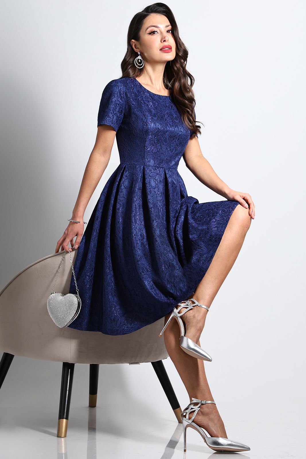 Платье тёмно-синее гипюровое с коротким рукавом Ода моде, хит
