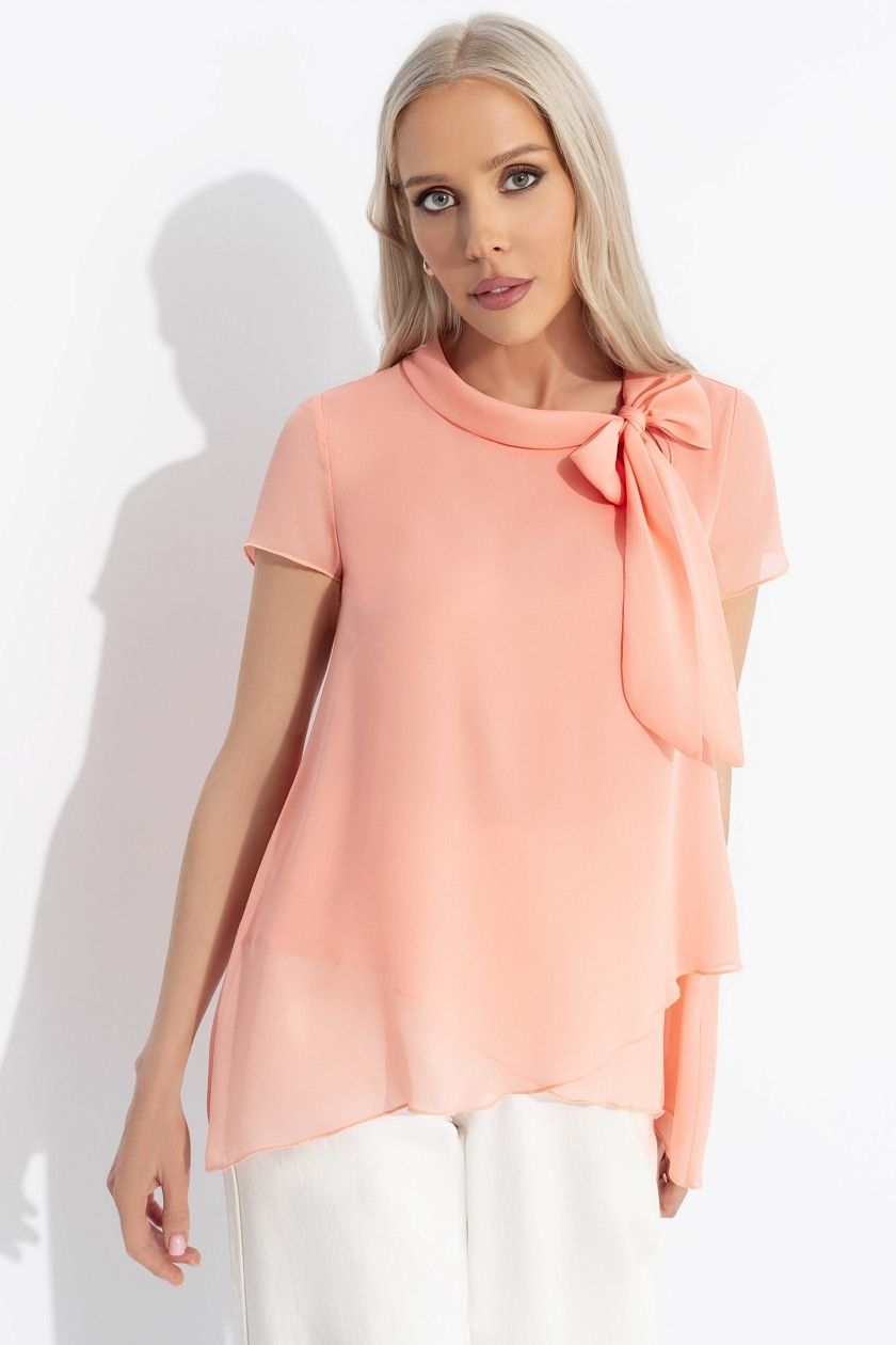 Светло-коричневая шифоновая блузка с асимметричной пелериной