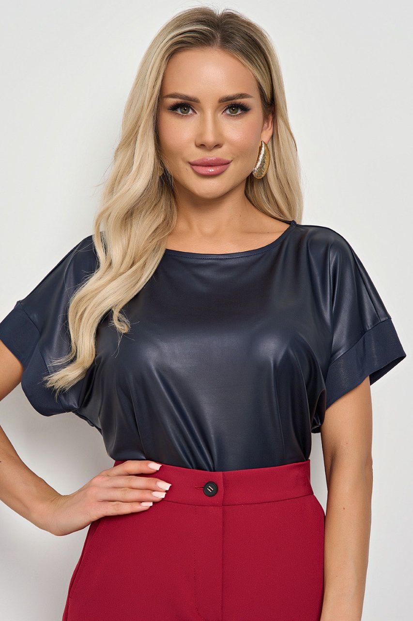 Джемпер вязаный серо-голубого цвета с короткими рукавами