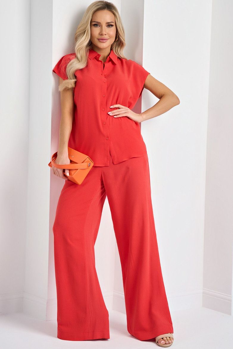 Брюки льняные красные с карманами