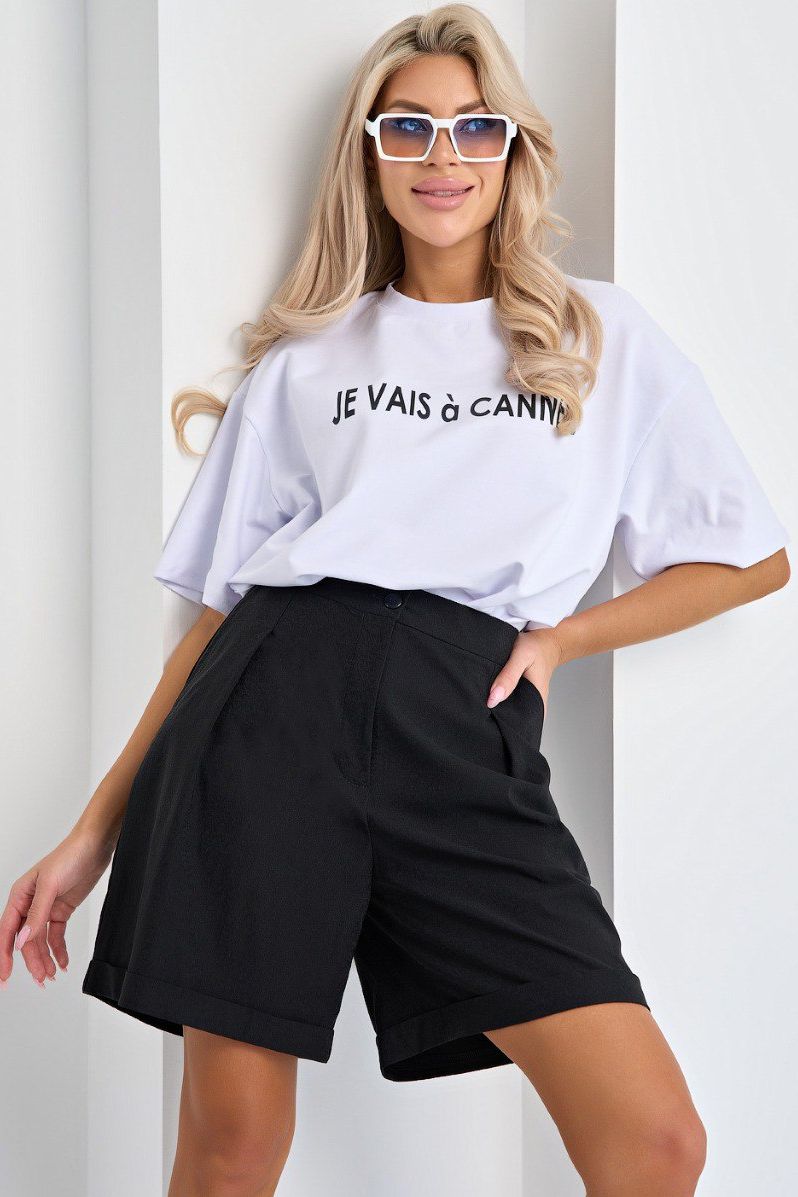 Шорты чёрные с карманами от компании Jetty. Модель на высокой посадке, притачной пояс с резинкой по спинке. Выполнены из костюмного полотна. По переду защипы и застёжка на молнию и пуговицу. Прекрасное решение для создания стильного образа.