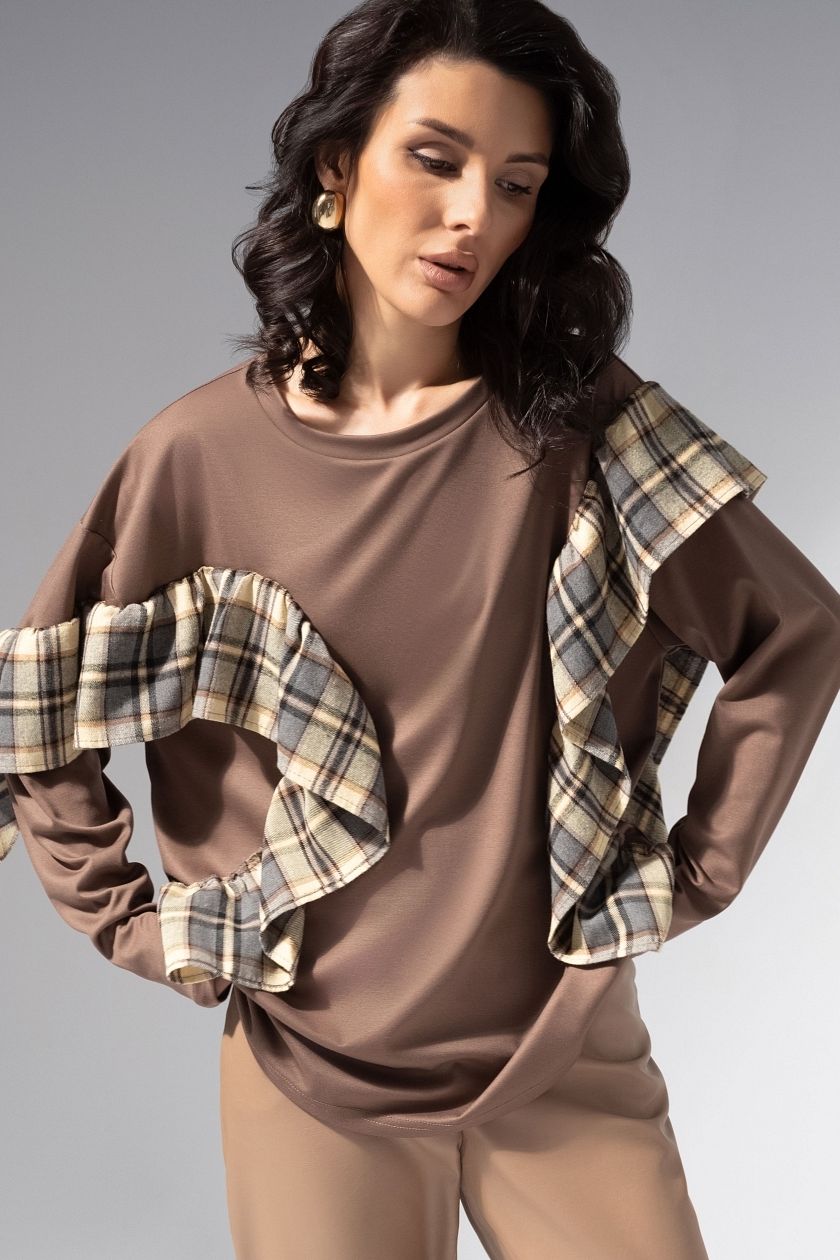 Лонгслив коричневый в стиле пэчворк
