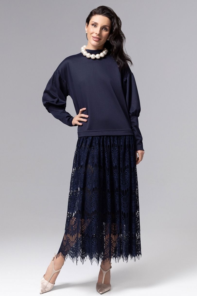 Свитшот тёмно-синий с объёмными воланы по рукавах