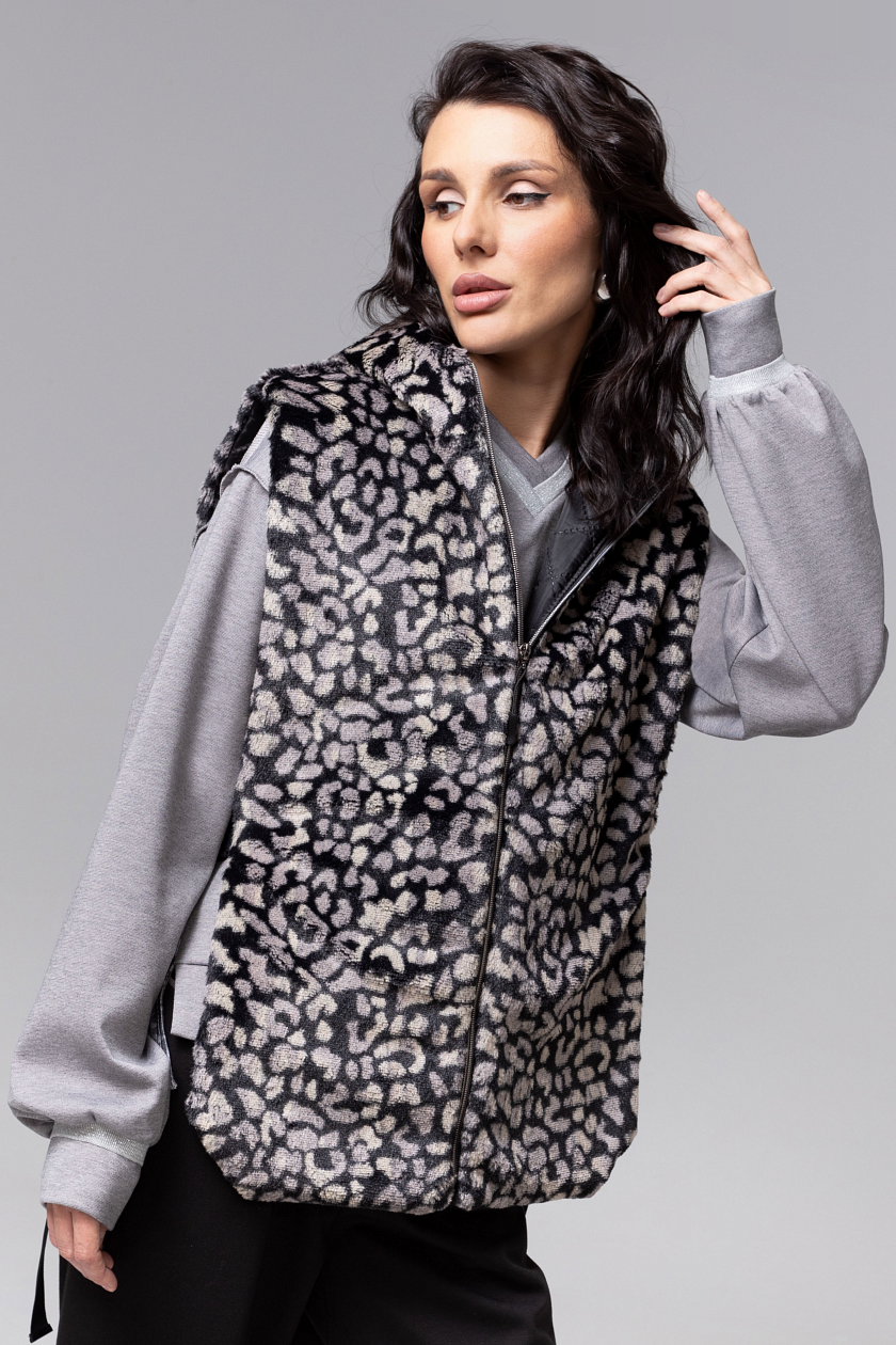Жилет меховой с леопардовым принтом от компании Charutti, выполнен из премиального текстурного материала, становится акцентным элементом гардероба, который подчеркивает индивидуальность и чувство стиля своей обладательницы. Жилет на стёганом подкладе с капюшоном. Застежка на молнию. Можно носить как верхний, и как нижний слой под верхнюю одежду. Ширина изделия регулируется по бокам. Размер единый: 42-52.